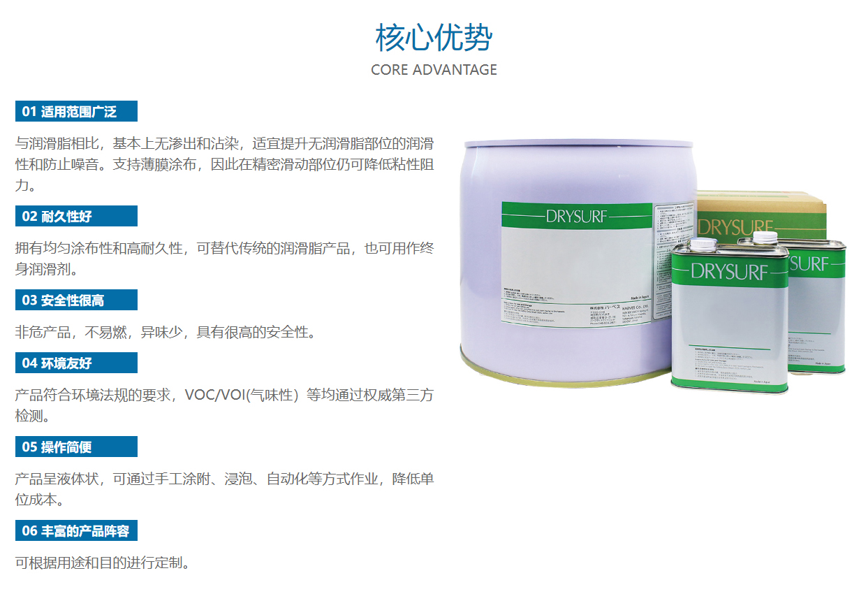 這款潤(rùn)滑劑可改善傳統(tǒng)潤(rùn)滑脂所引起的涂附量管理、飛濺、滲出、低沉噪音、沾染等問題。